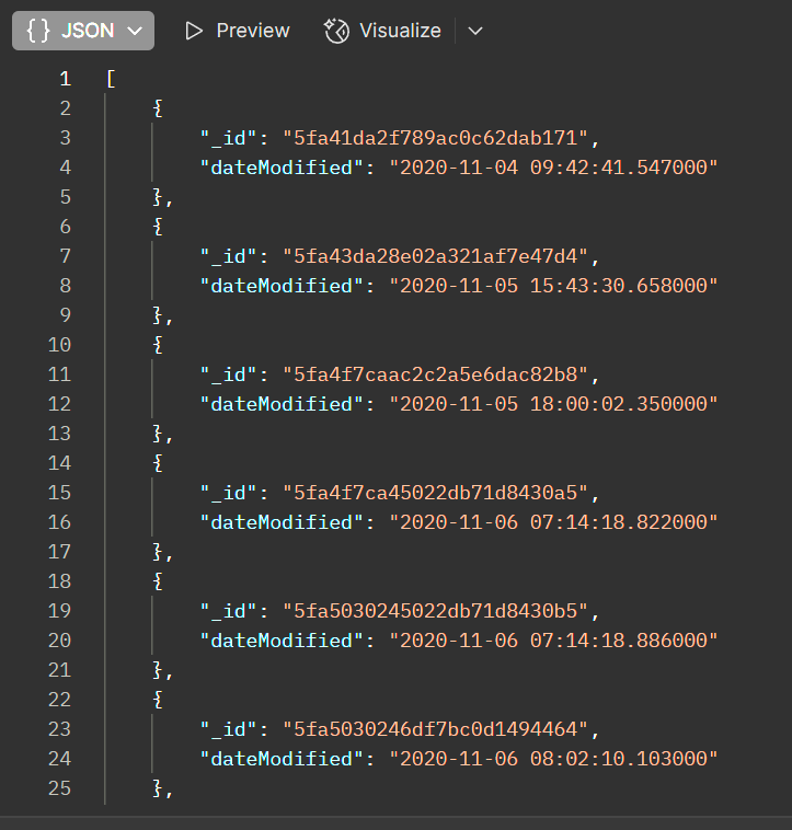 Відображається id та дата зміни.